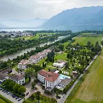 The comfortable Delta Resort Apartments Ascona, located approximately 500 metres from the PIX Club Ascona, offers an indoor swimming pool, Wi-Fi throughout the property. Providing access to such entertainment venues as the performing arts theater "Teatro San Materno" merely 0.6 km away, the 5-star family-friendly hotel has 2 restaurants.
